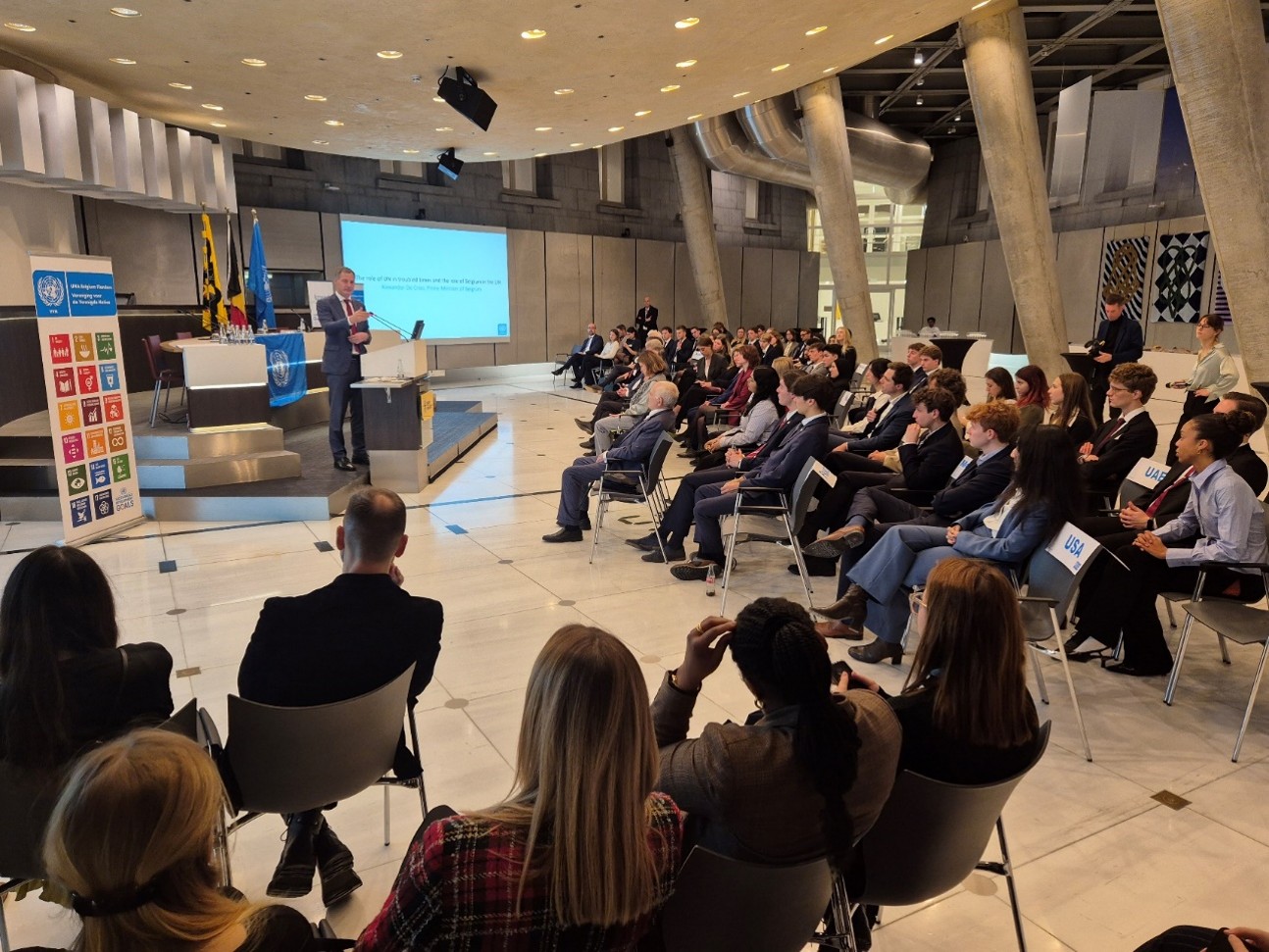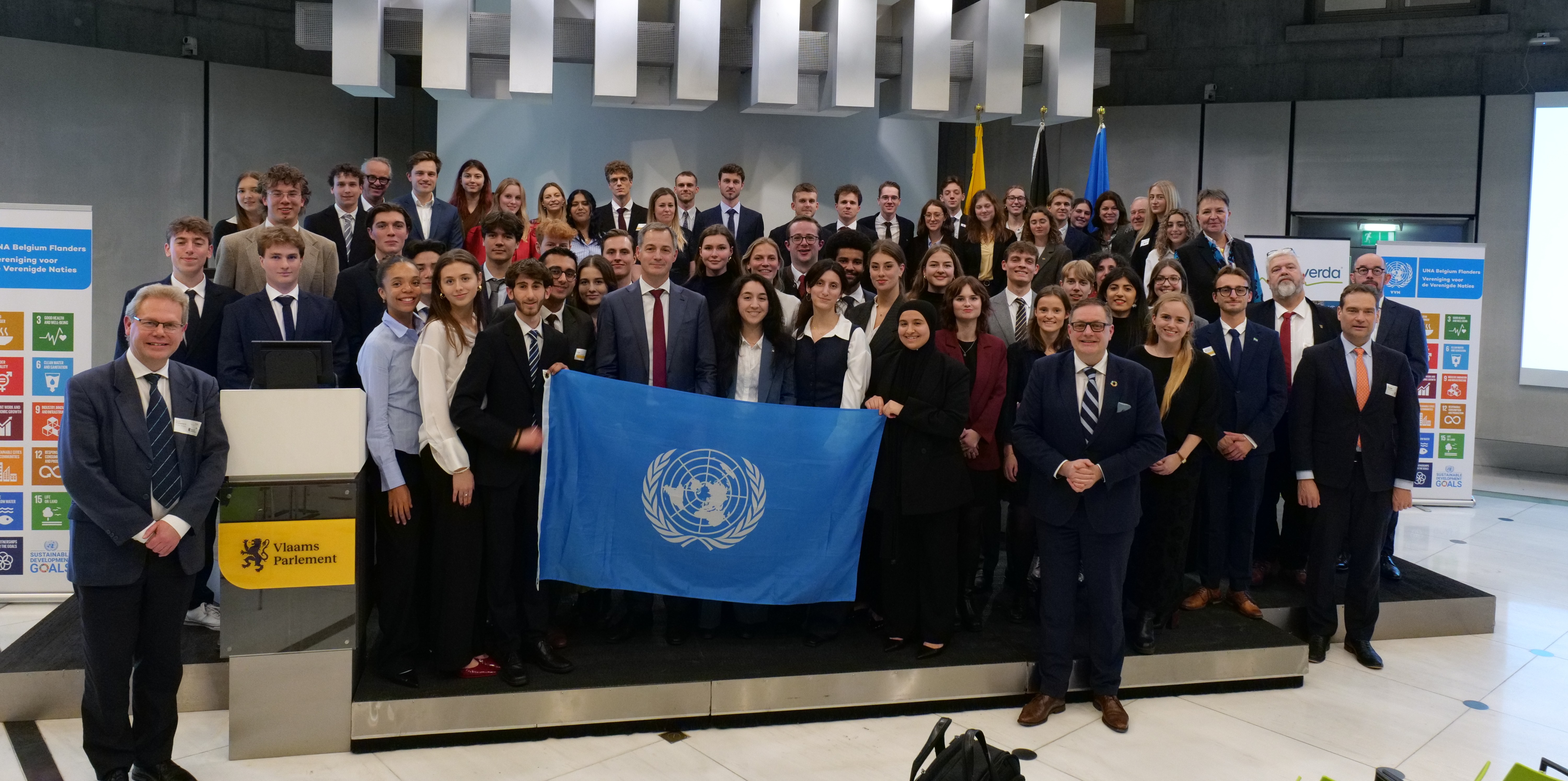 The Model United Nations (MUN) organised by the United Nations Association Belgium Flanders (VVN) brings together students from four universities: the University of Antwerp (UA), Ghent University (UGent), KU Leuven, and the Vrije Universiteit Brussel (VUB). Together, they simulate the workings of the United Nations and international diplomacy.